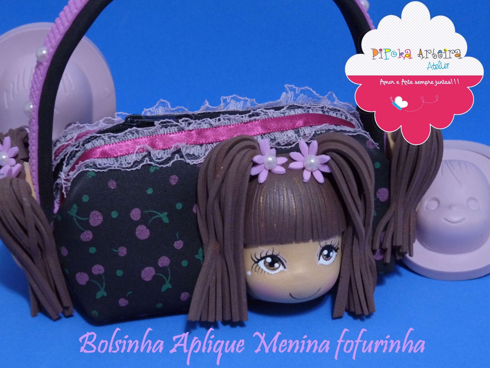 | Esta bolsinha utilizei modelador para fazer o rostinho da menininha, ja o molde da bolsinha encontrei na net |